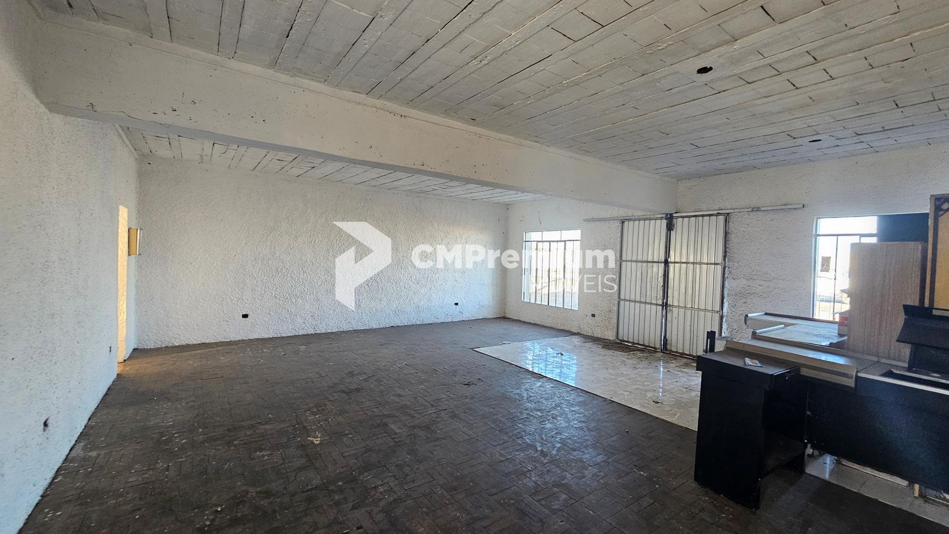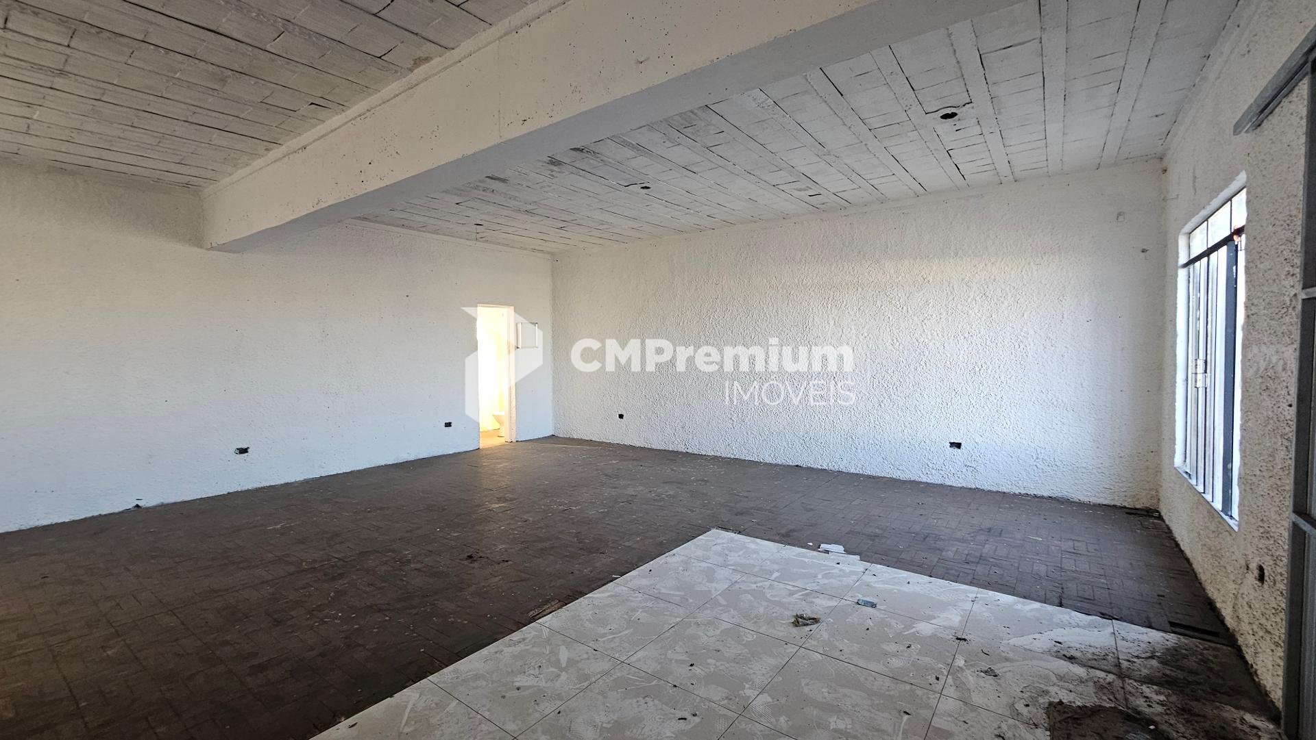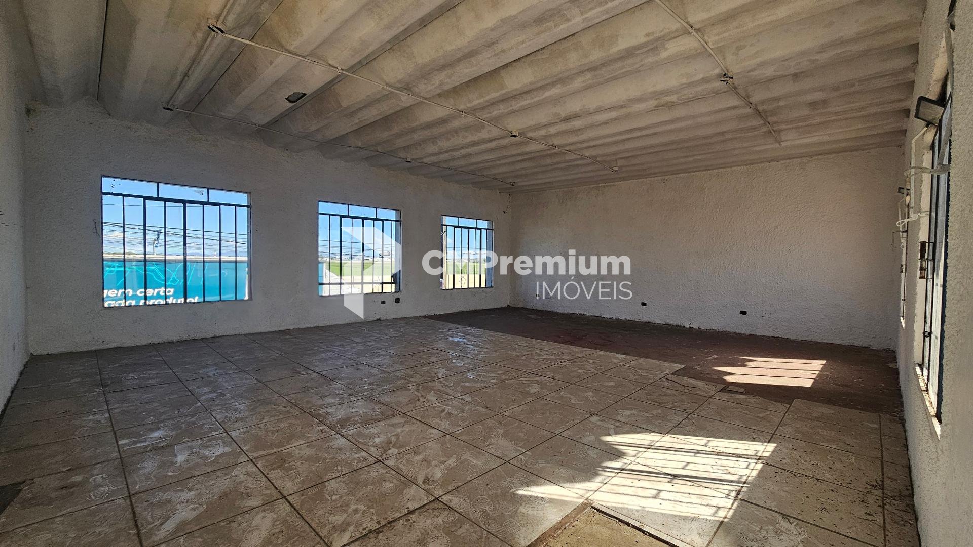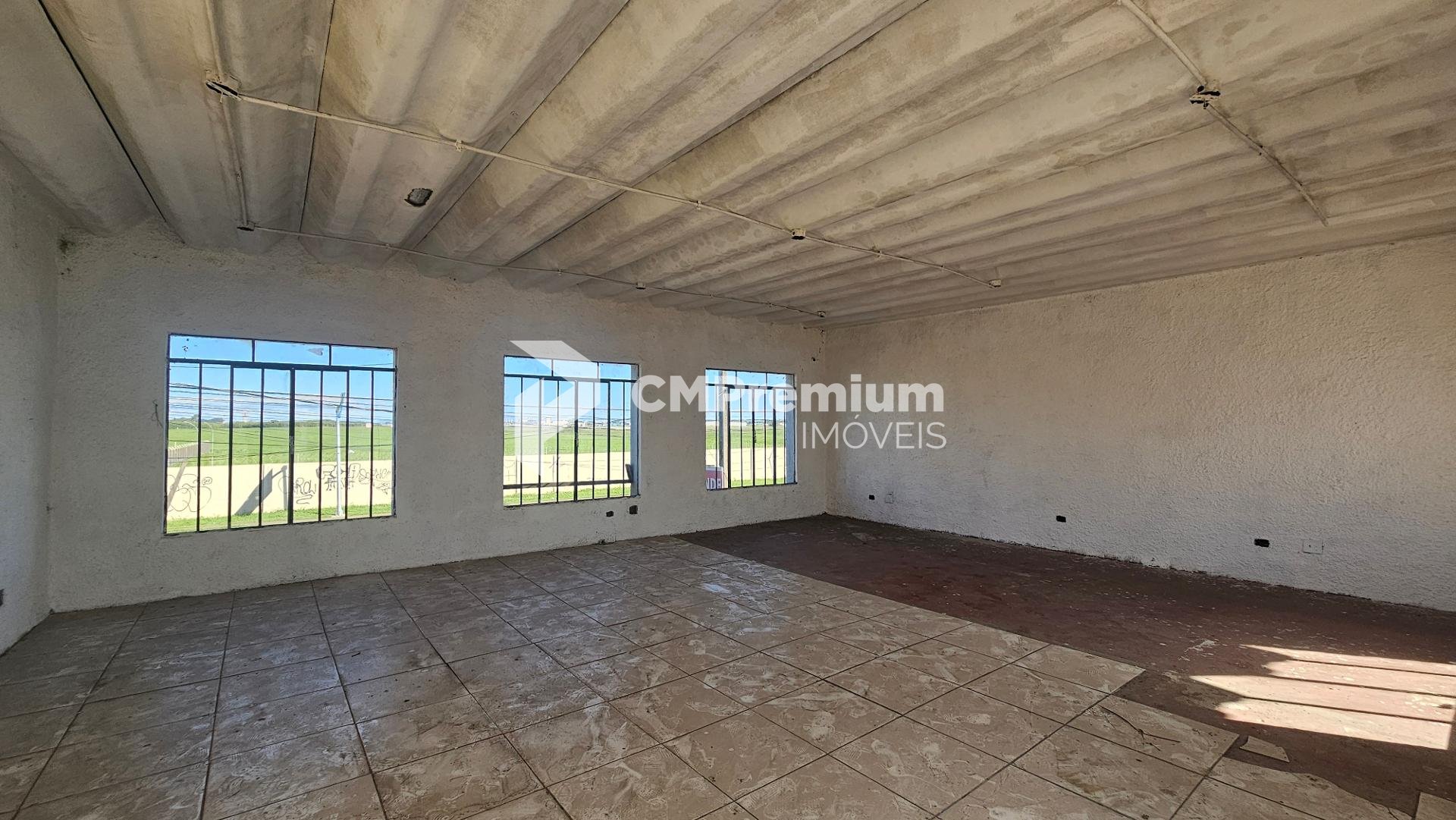 Pavimento superior: espaço igualmente amplo, também livre de colunas, com cerca de 75m², acessado por escada na parte traseira do prédio.