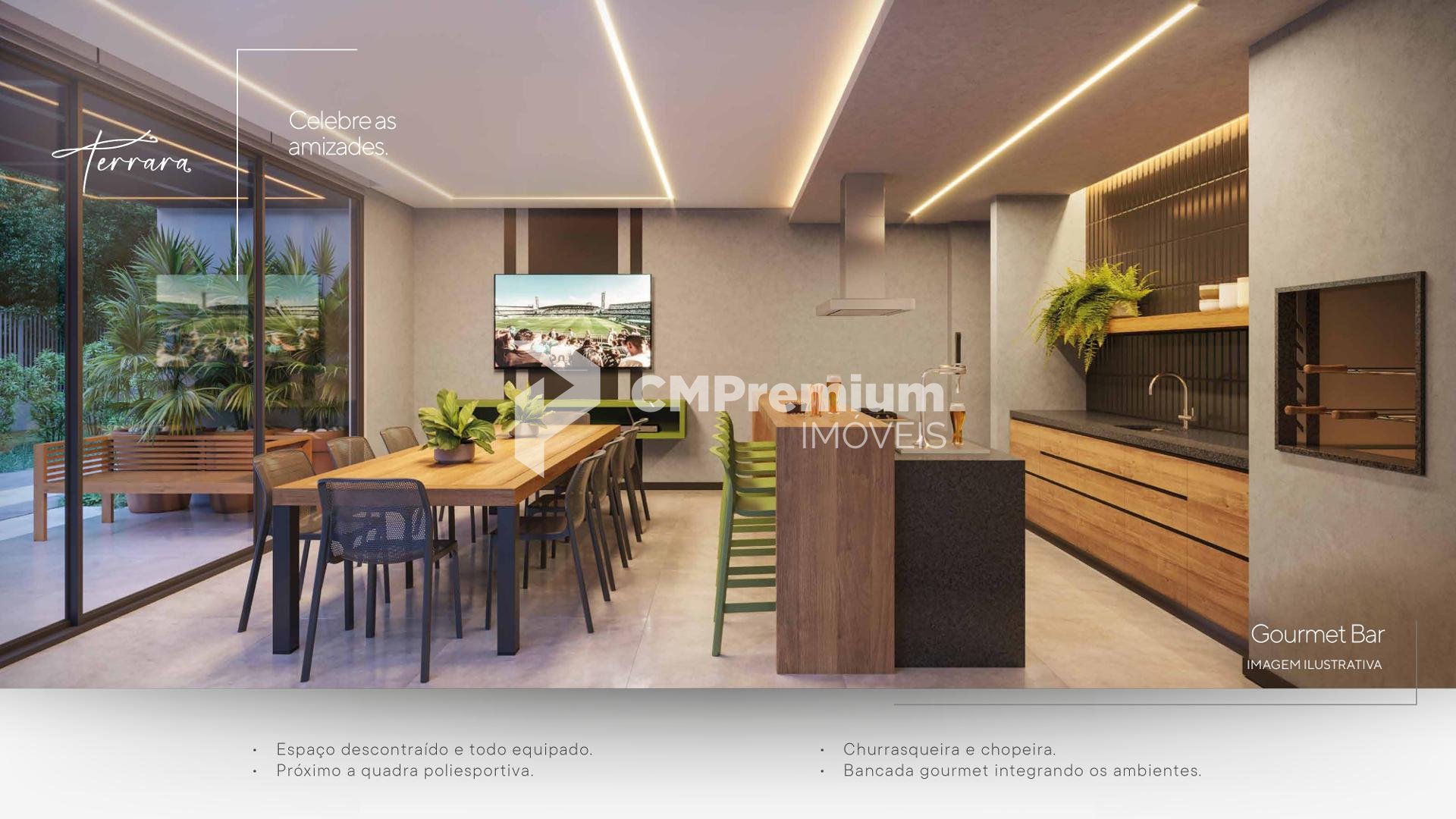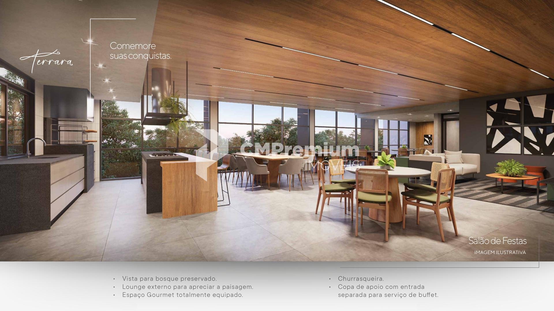 Condomínio com portaria 24 horas, estacionamento para visitantes, academia totalmente equipada, salão de festas com vista para o bosque, gourmet bar com chopeira, salão de jogos, brinquedoteca, playground ao ar livre, quadra poliesportiva iluminada, spa completo com piscina aquecida e sauna úmida, bosque preservado com trilhas, rede elétrica subterrânea e área de apoio com depósito para delivery.