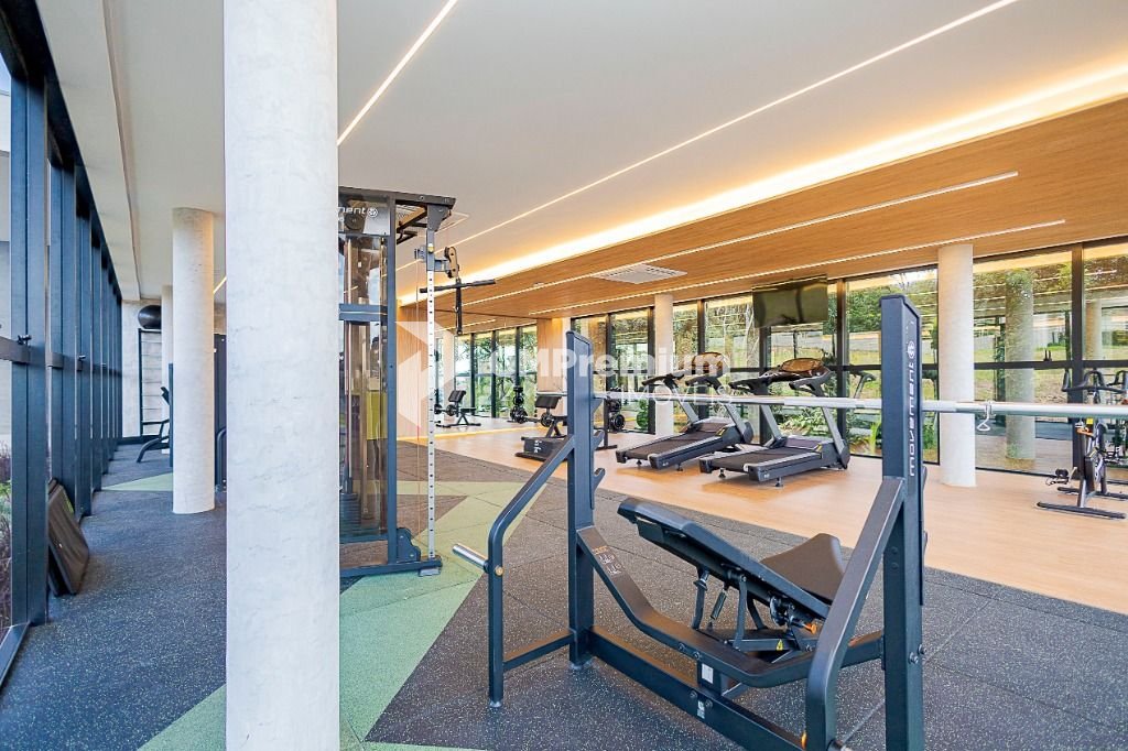 Academia equipada de primeira linha, fechamento em vidro com vista para o bosque