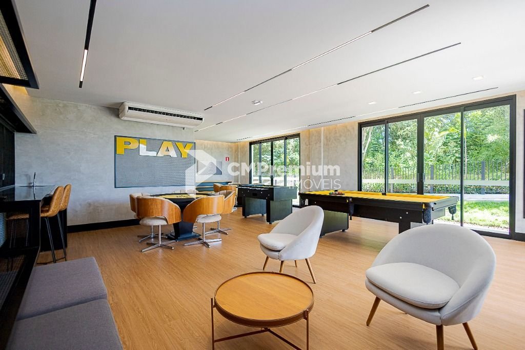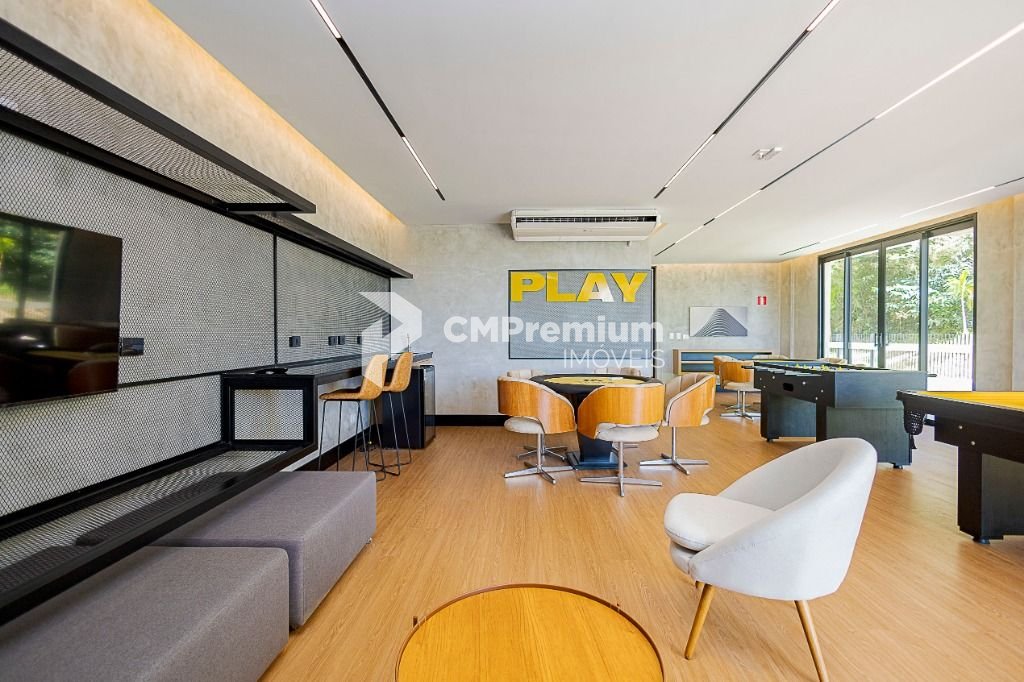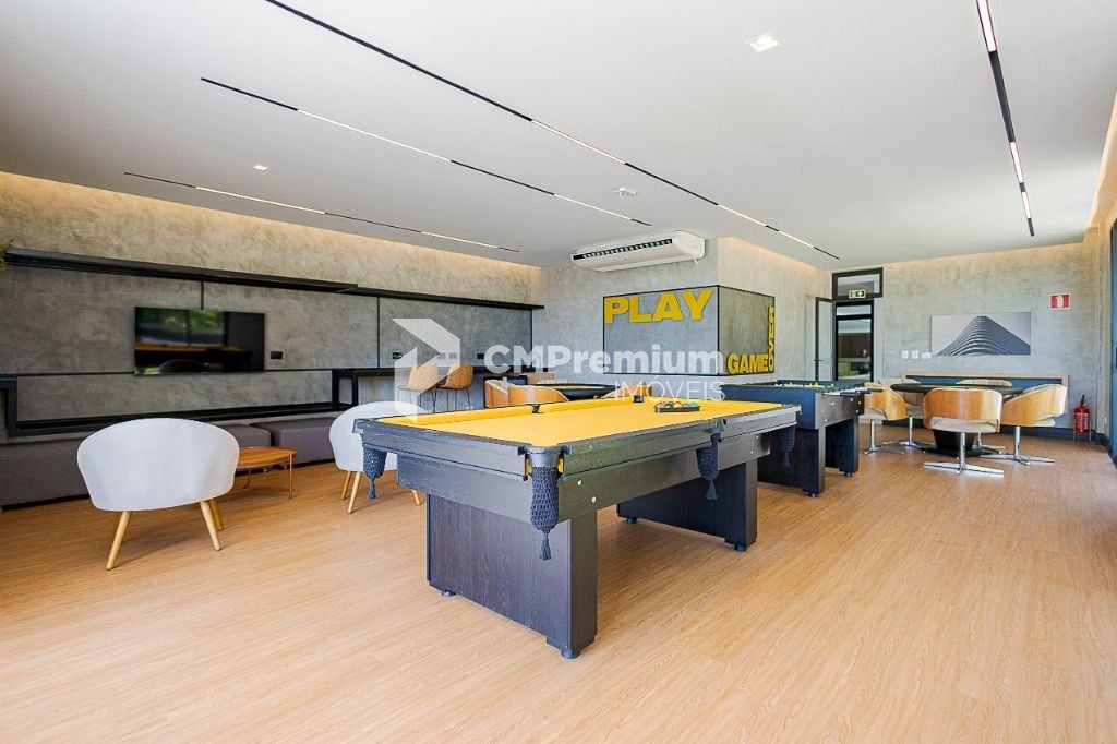 Salão de jogos com mesa de cartas, pebolim, sinuca e minibar com TV.- Brinquedoteca.