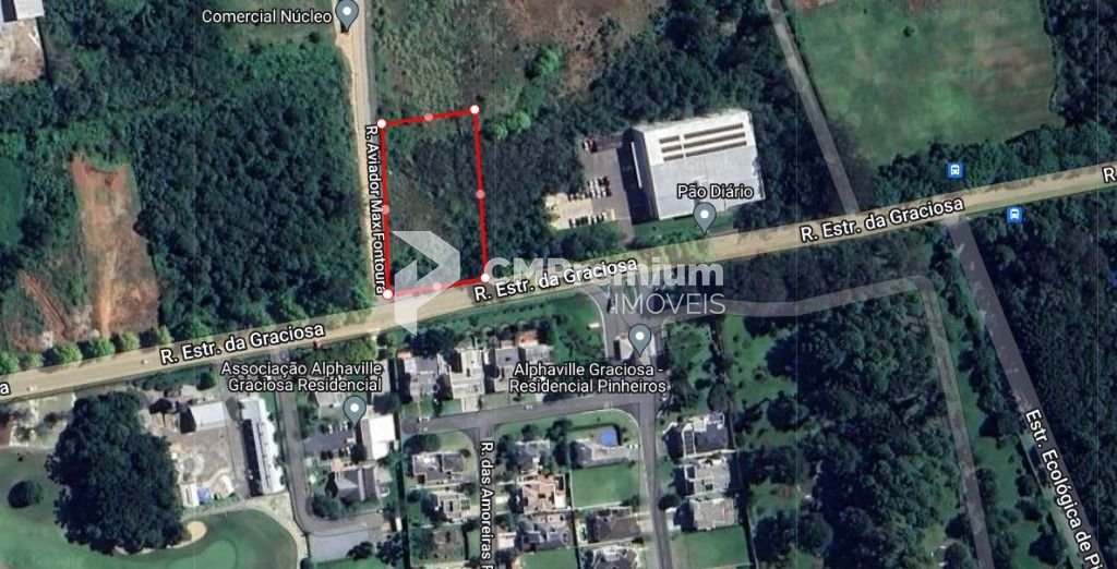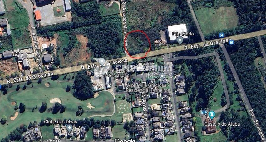 Terreno amplo de esquina localizado em frente ao Alphaville Pinheiros e ao lado do Pão Diário, na divisa de Pinhais com Colombo.